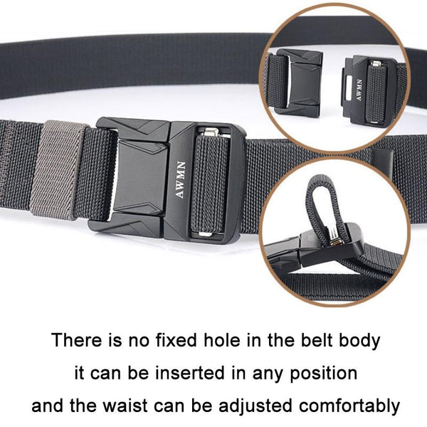 AWMN Men Outdoor Metal Buckle Elastic Nylon Belt, Length: 120cm(Plain Weave Army Green)