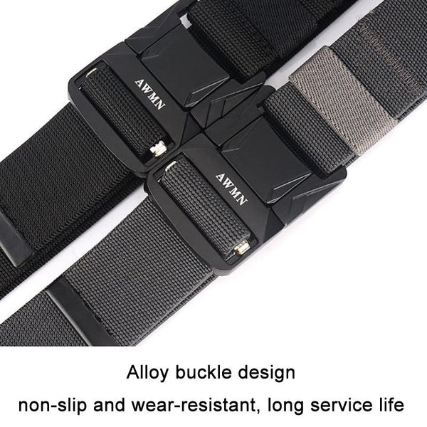 AWMN Men Outdoor Metal Buckle Elastic Nylon Belt, Length: 120cm(Twill Gray)