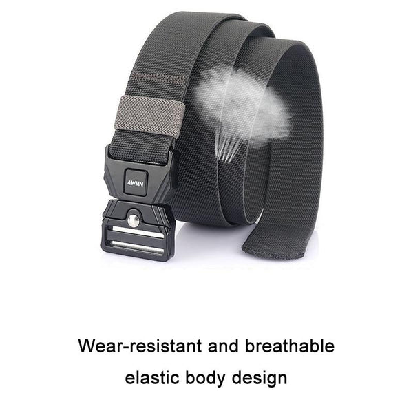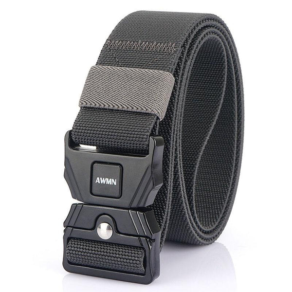 AWMN Men Outdoor Sports Alloy Snap Buckle Elastic Belt, Length: 125cm(Dark Gray)