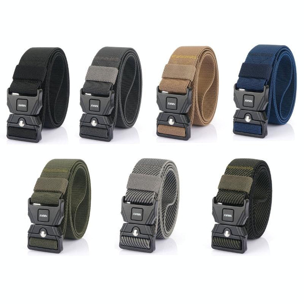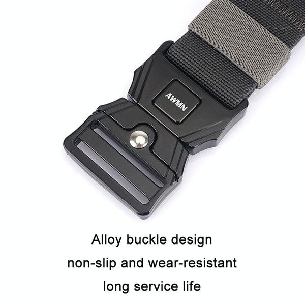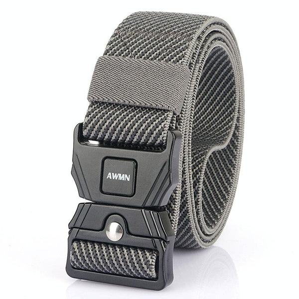 AWMN Men Outdoor Sports Alloy Snap Buckle Elastic Belt, Length: 125cm(Twill Gray)