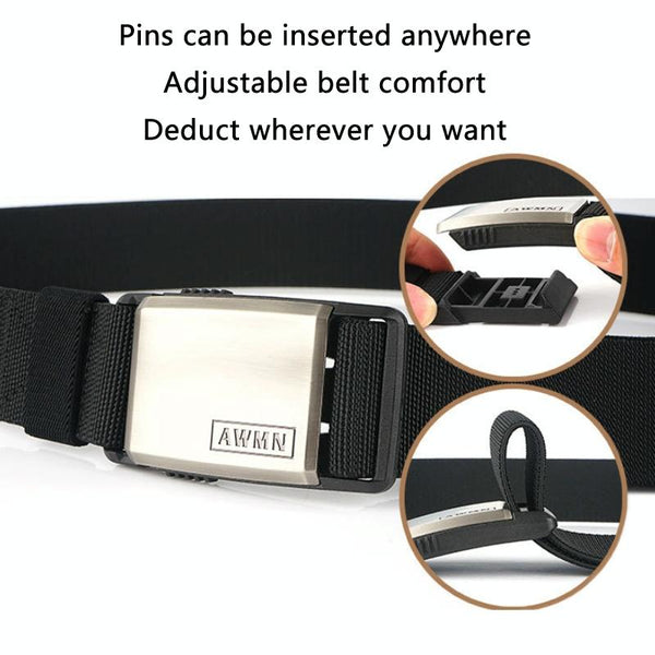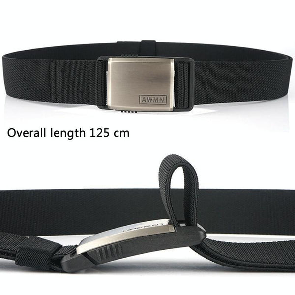 AWMN Metal Nylon Magnetic Buckle Fashion Casual Men Belt, Length: 125cm(Black Cap Sapphire)