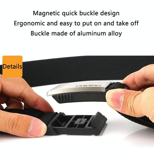 AWMN Metal Nylon Magnetic Buckle Fashion Casual Men Belt, Length: 125cm(Silver Cap Black)