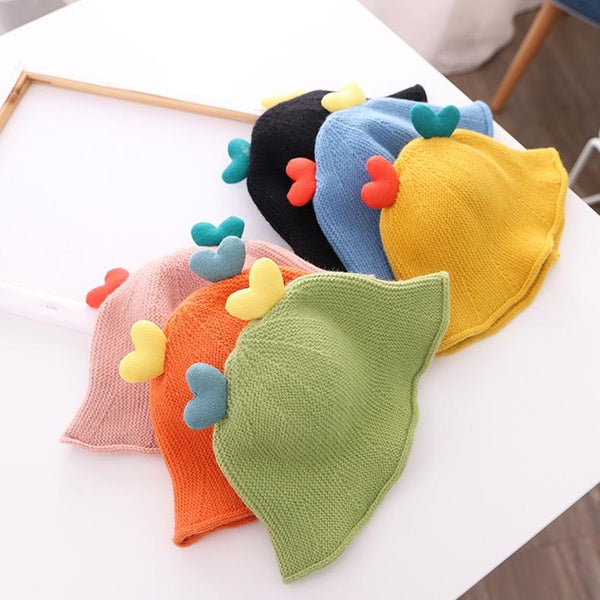 Baby Love-heart Knitted Hat Children Wild Knitted Fisherman Hat, Size: L(Skin Powder)