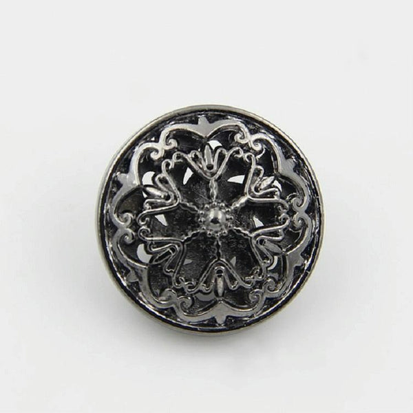 Black 100 PCS Hollow Flower Shape Metal Button Clothing Accessories, Diameter:22mm