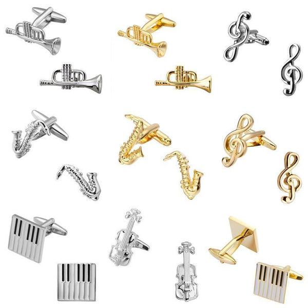 Brass Music Series Instrument Note Cufflinks, Color: Silver Eighth Note