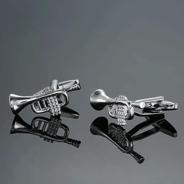 Brass Music Series Instrument Note Cufflinks, Color: Silver Trumpet
