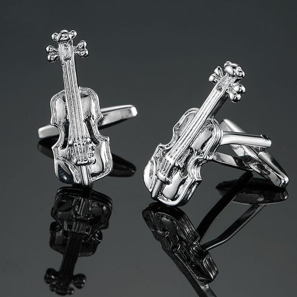 Brass Music Series Instrument Note Cufflinks, Color: Silver Violin