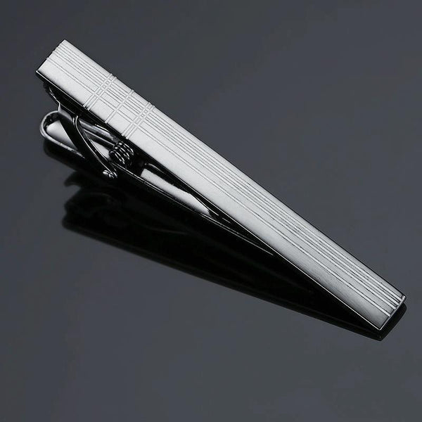 Brass Polished Gum Pattern Business Men Tie Clip, Color: Black Laser Line