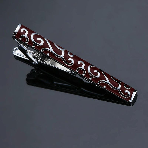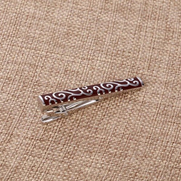 Brass Polished Gum Pattern Business Men Tie Clip, Color: Red Pattern