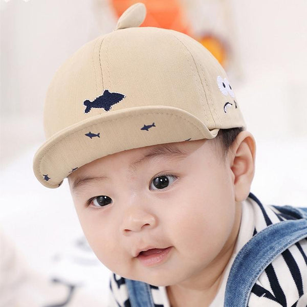 C0363 Cartoon Shark Pattern Baby Peaked Cap Cotton Hat, Size: 46cm Adjustable(Beige)