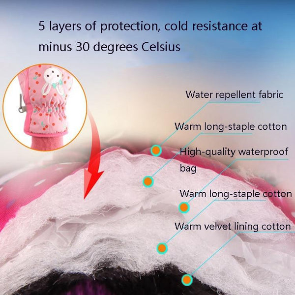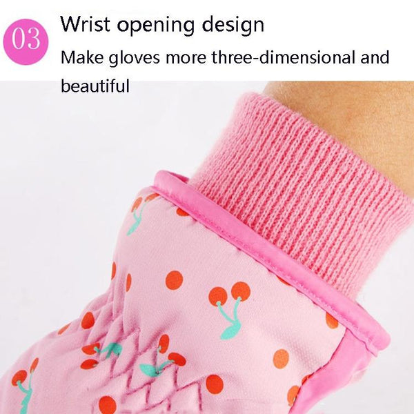 Cartoon Bow Rabbit Pattern Children Ski Gloves Windproof Waterproof Warm Cotton Gloves, Colour: Red(S)