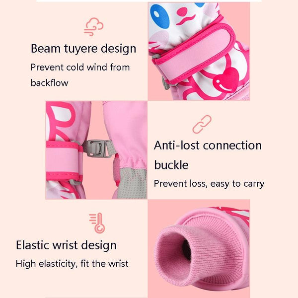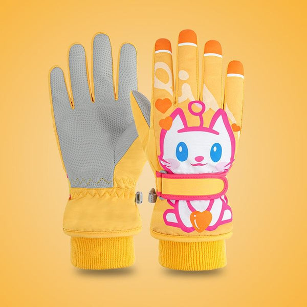 Cartoon Cat Pattern Girls Cute Cotton Gloves Children Ski Windproof and Warm Gloves Non-Slip and Waterproof Riding Gloves, Size: S(Yellow)