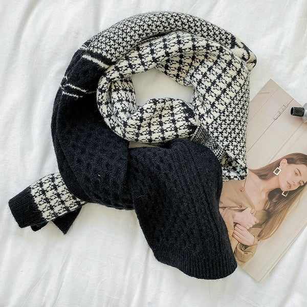 Classic Houndstooth Color Matching Scarf Women Autumn And Winter All-Match Warm Knitted Bib, Length (cm): 190cm( Black)