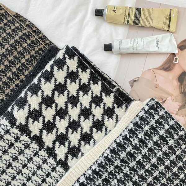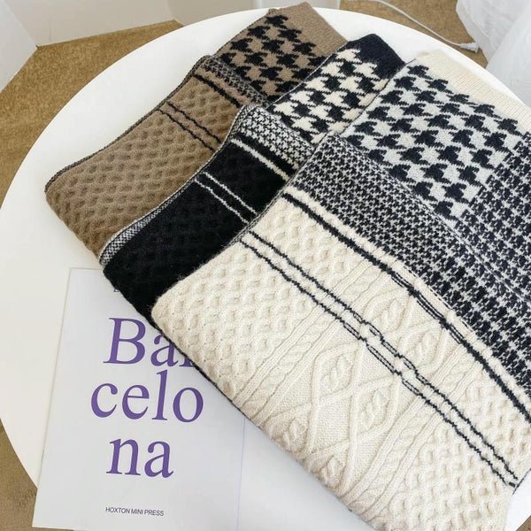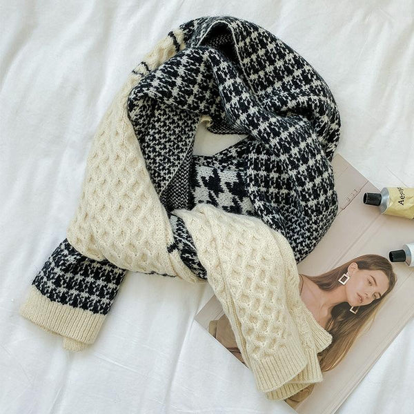 Classic Houndstooth Color Matching Scarf Women Autumn And Winter All-Match Warm Knitted Bib, Length (cm): 190cm(Beige)
