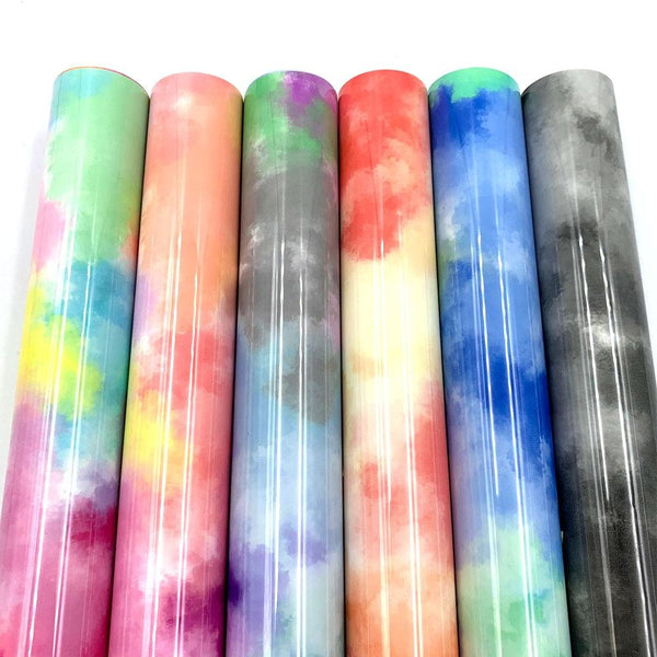 Clouds Watercolor Tie Dye Heat Transfer Vinyl Make Sign Pattern Cricut Film 30x 50cm(Purple Green)