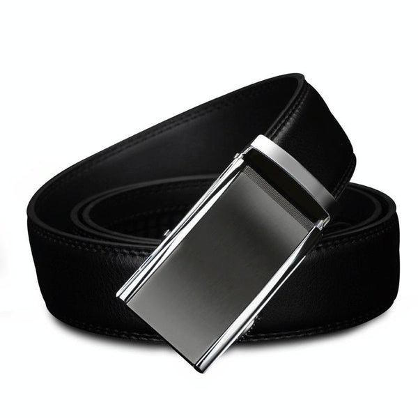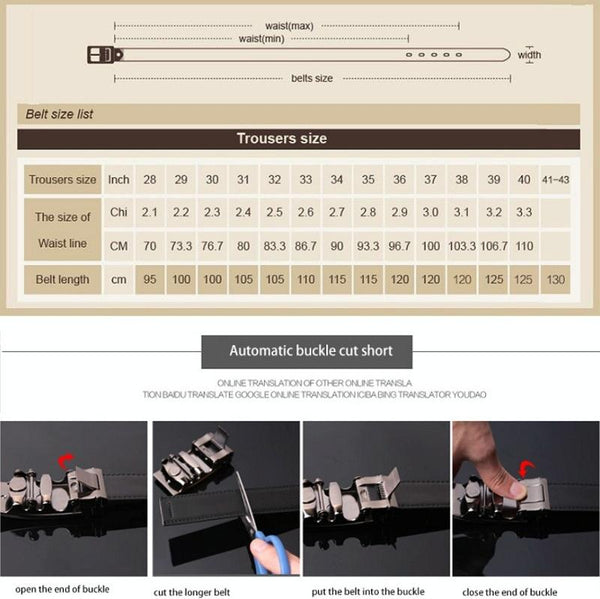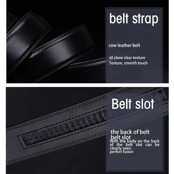 COWATHER CZ022 Men Two-Layer Leather Casual Business Automatic Buckle Belt, Length: 110cm(Black)