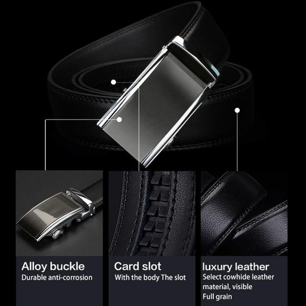 COWATHER CZ022 Men Two-Layer Leather Casual Business Automatic Buckle Belt, Length: 115cm(Black)