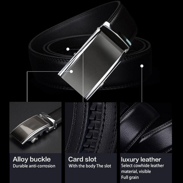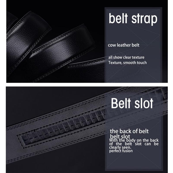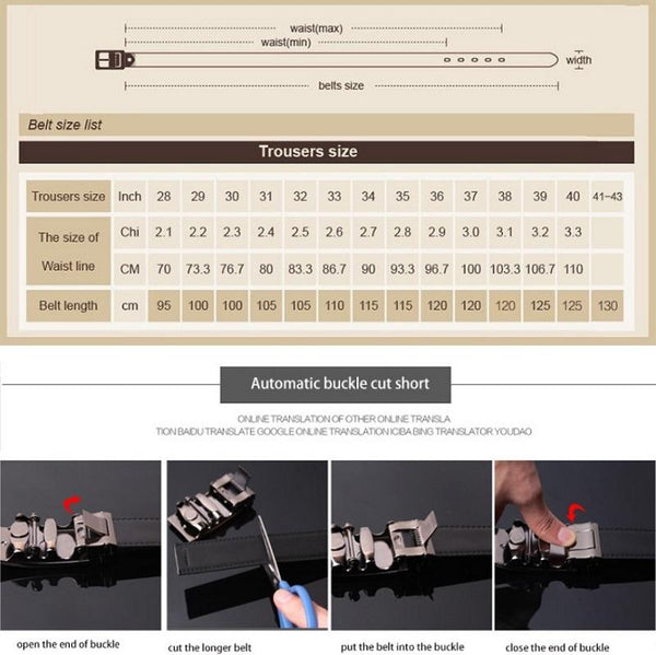 COWATHER CZ022 Men Two-Layer Leather Casual Business Automatic Buckle Belt, Length: 130cm(Black)