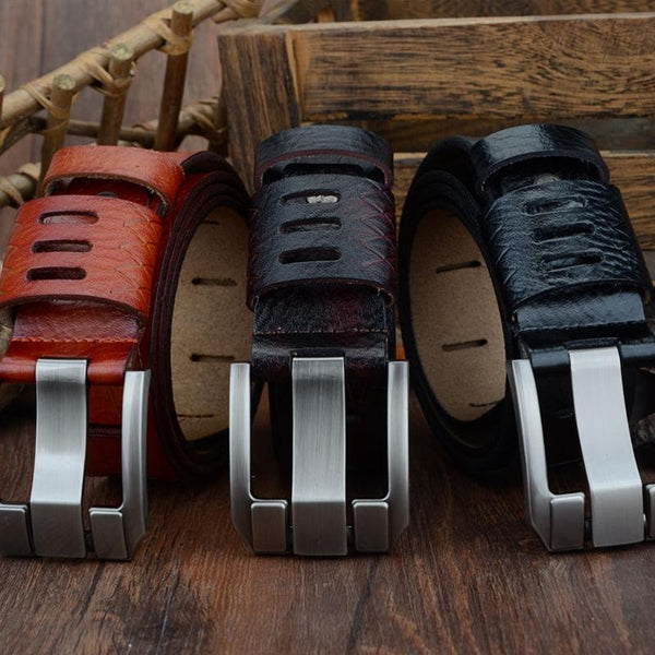 COWATHER QSK001 Men Casual Fashion Two-Layer Leather Pin Buckle Belt,Length 110cm(Black)