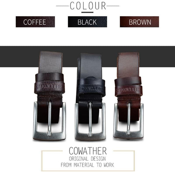 COWATHER XF018 Men Casual Business Pin Buckle Cowhide Belt,Length: 130cm(Brown)