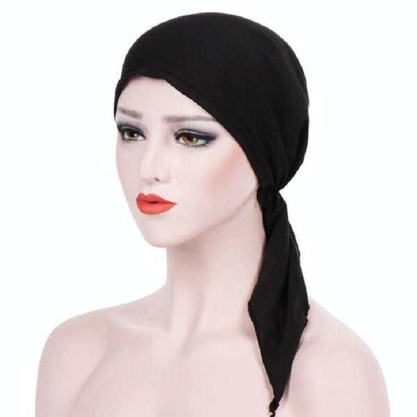 Curved Two Tail Wrap Cap Turban Hat, Size:M (56-58cm)(Black)
