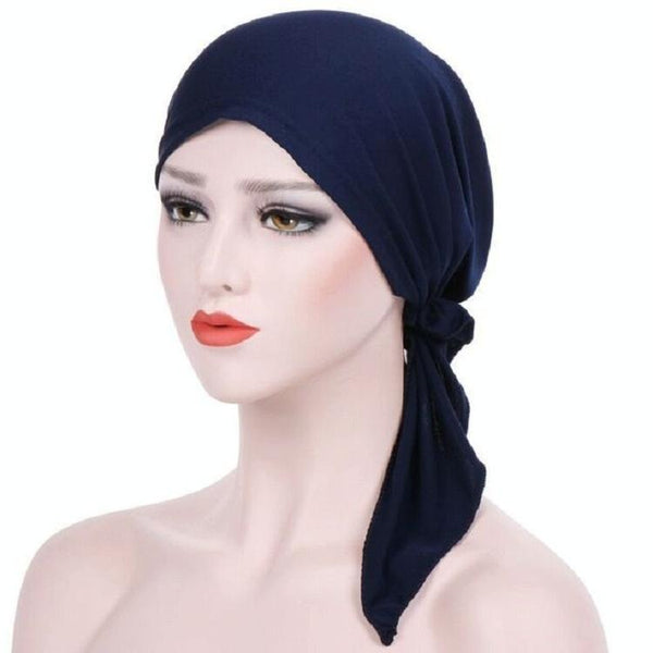Curved Two Tail Wrap Cap Turban Hat, Size:M (56-58cm)(Navy)