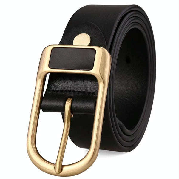 Dandali 120cm Mens Rubberized Pin Buckle Belt Casual Alloy Buckle Belt, Style: Gold Leather Pin Buckle(Black)