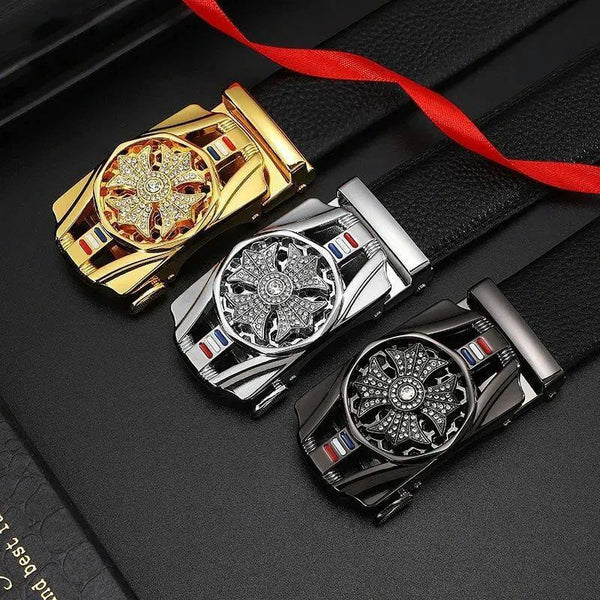 Dandali Scratch-Resistant Wrapped Edge Automatic Buckle Belt Mens Casual Waistbone Belt, Size: 120cm(Gold)