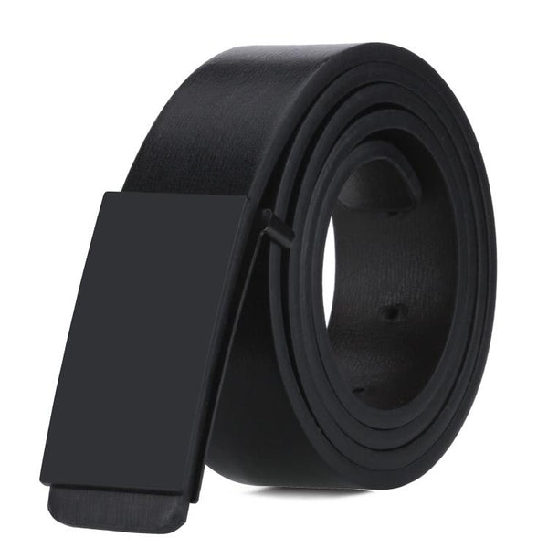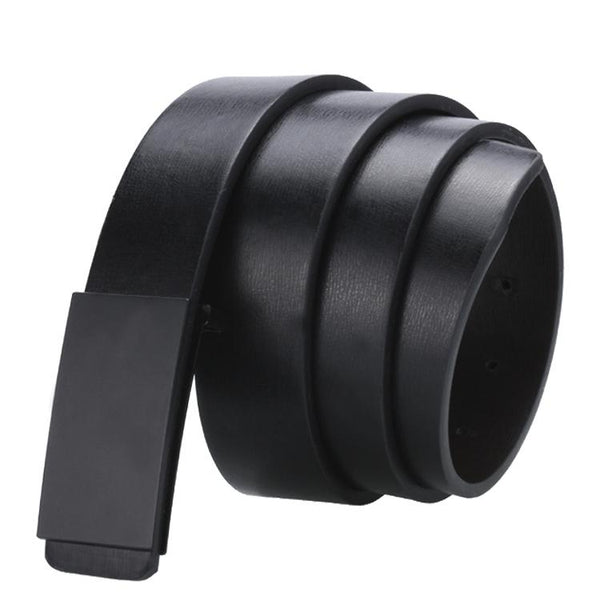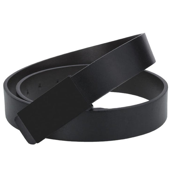 Dandali TT26 Men Fashion Black Flat Buckle Leather Belt Waistband, Length: 115cm
