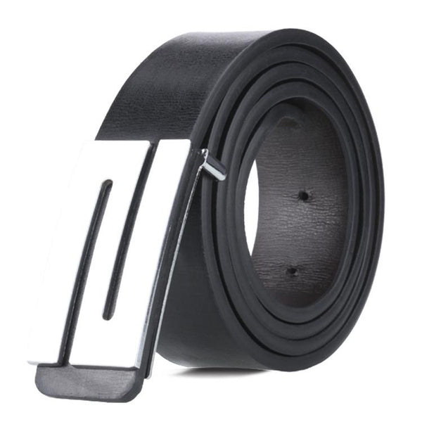 Dandali TT26 Men Fashion Silver N Buckle Leather Belt Waistband, Length: 115cm