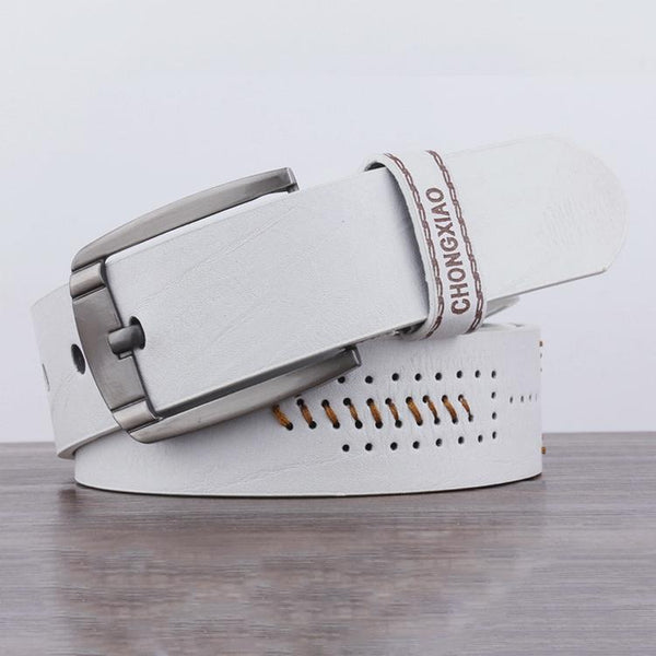 Dandali XX818 Men Fashion Retro Leather Belt Waistband, Length: 110cm (White)