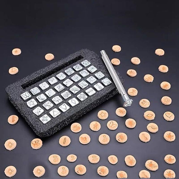 ER058 32 In 1 Leather English Punch Indian Style Printing Leather Carving Tools