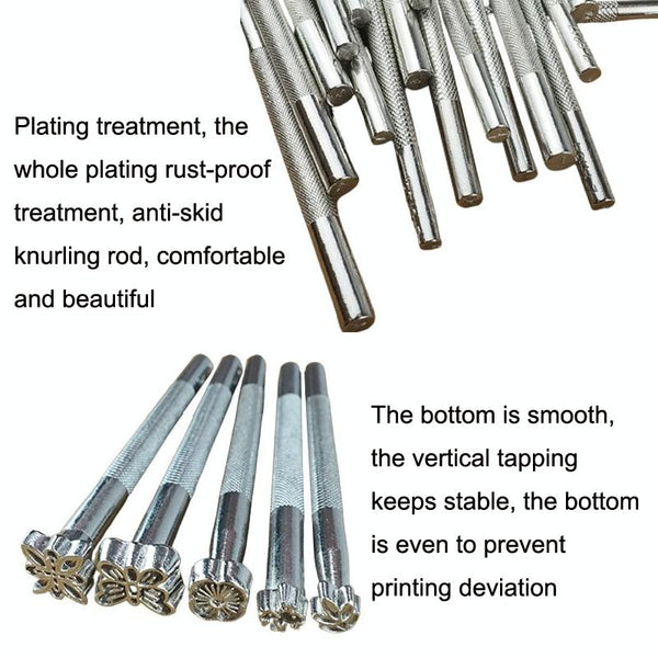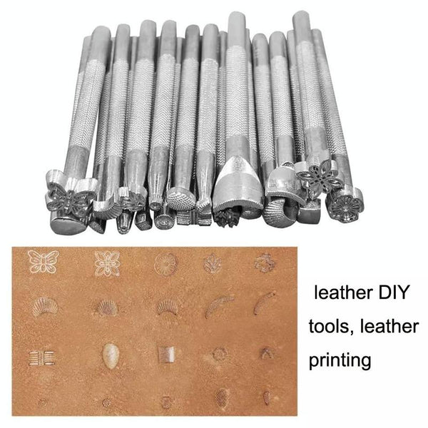 ER076 20 In 1Leather Carving Printed Leather Bag Carving Knocking Flowers Craft DIY Leather Tool