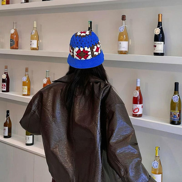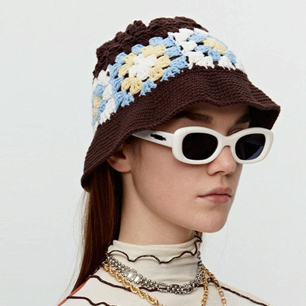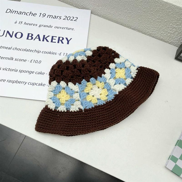 Flower Fisherman Hat Summer Hollow Breathable Knitted Wool Cap, Size: M(Coffee)