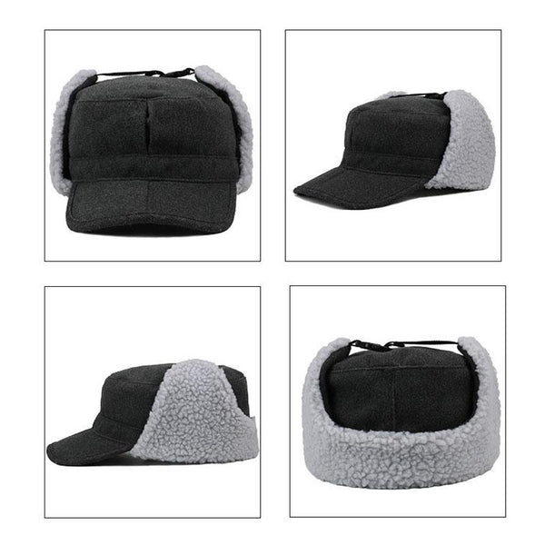Foldable Warm Lamb Down Thickened Windproof Duck Tongue Hat, Style: Men (Dark Gray)