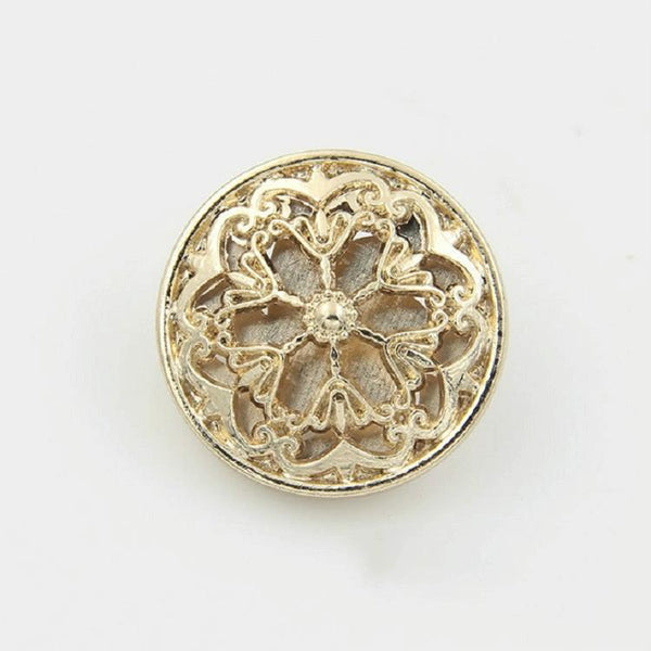Gold 100 PCS Hollow Flower Shape Metal Button Clothing Accessories, Diameter:18mm