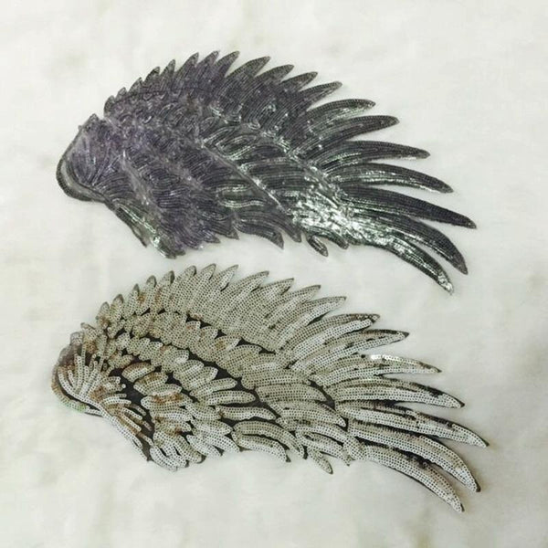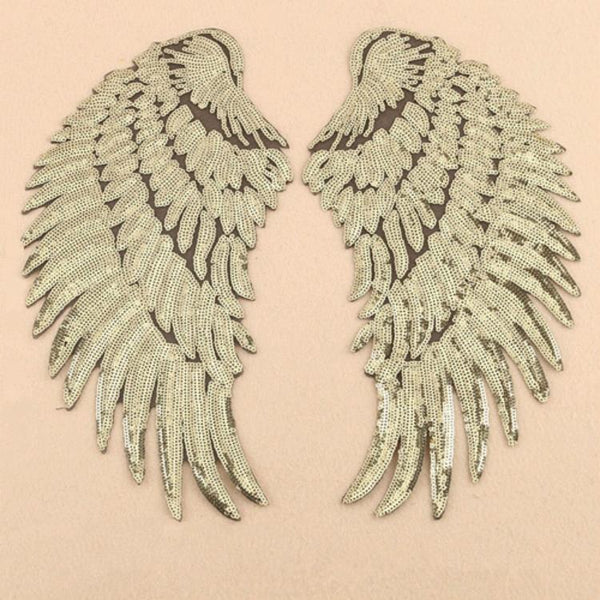 Gold A Pair Sequin Feather Wing Shape Clothing Patch Sticker DIY Clothing Accessories, Size:Small 20.5 x 10cm
