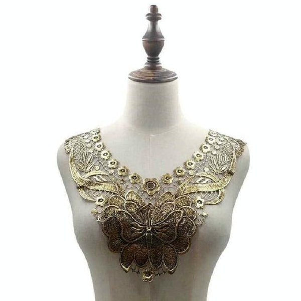 Gold Lace Butterfly Flower Embroidery Collar Flower Three-dimensional Hollow Fake Collar DIY Clothing Accessories, Size: 36 x 30cm