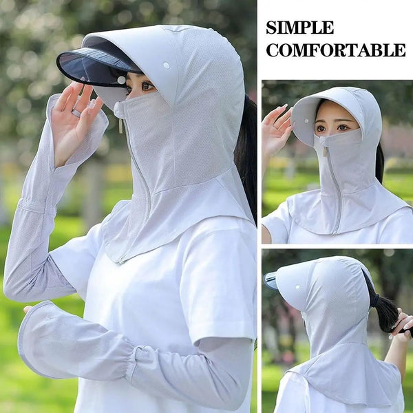 Ice Silk Sun Shade Hat Summer Face Mask Hat Cycling Sun Hat, Size: One Size(Light Gray)