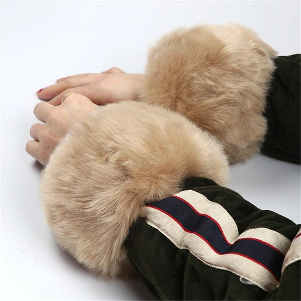 Imitation Rabbit Fur Wrist Sleeves Dual-use Anti-Flooding Sleeves, Size:One Size(Khaki)