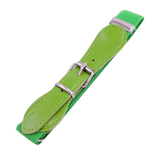Kids Polyester + PU Leather Square Pin Buckle Adjustable Elastic Belt, Length:65cm(Green)