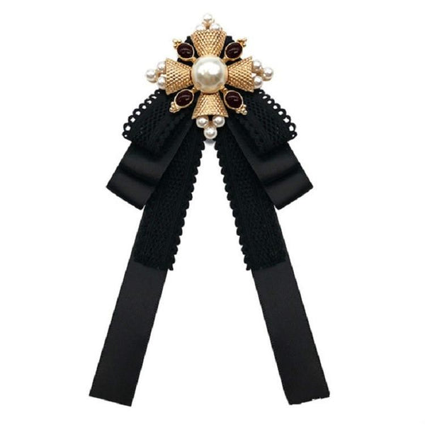 Ladies Court Style Cloth Brooch Lace Bow-knot Bow Tie Costume Accessories, Style:Pin Buckle Version(Black)