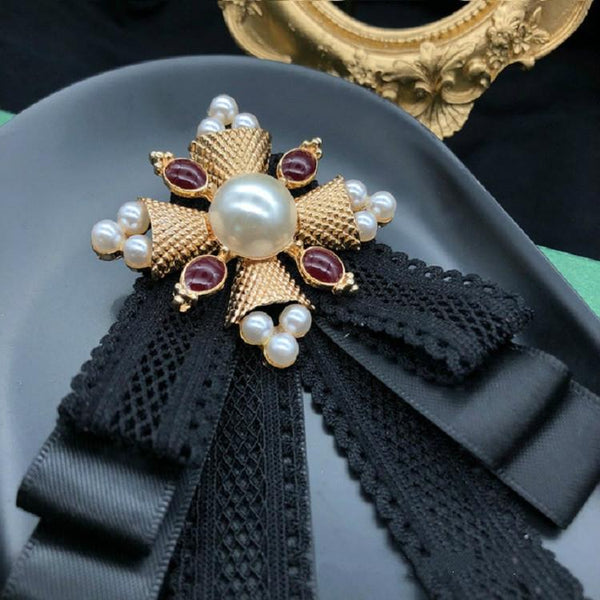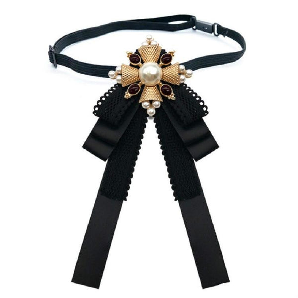 Ladies Court Style Cloth Brooch Lace Bow-knot Bow Tie Costume Accessories, Style:Tie Belts Version(Black)