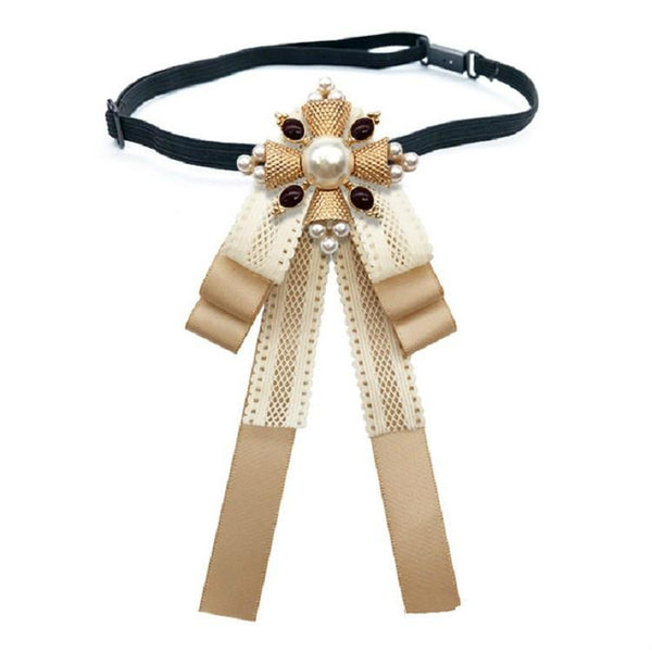 Ladies Court Style Cloth Brooch Lace Bow-knot Bow Tie Costume Accessories, Style:Tie Belts Version(Champagne)