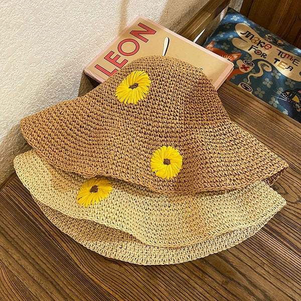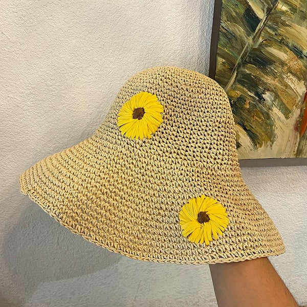 Ladies Summer Daisy Pattern Sun Hat Beach Sunscreen Big Brimmed Hat Straw Hat, Size: M (56-58cm)(Beige)