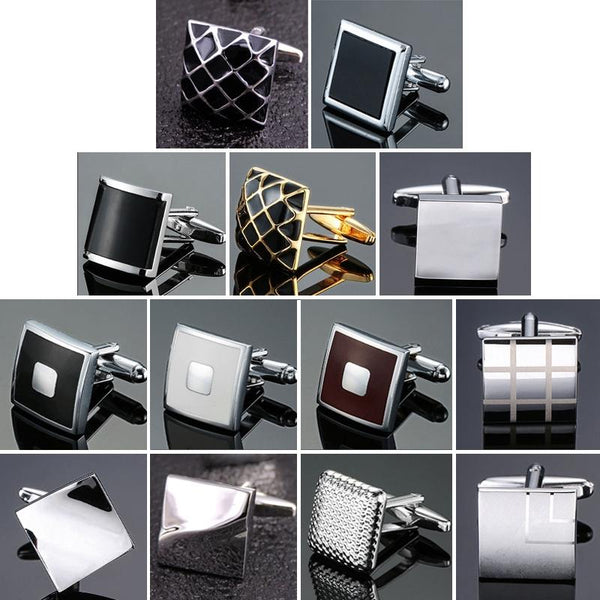 Laser Metal Brass Men Shirt Cufflinks, Color: Black Bottom Golden Net