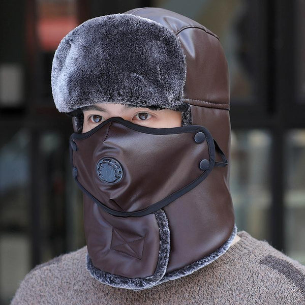 Leather Lei Feng Hat Winter Warm Ear Protection Cotton Cap, Style: Without Lens Brown