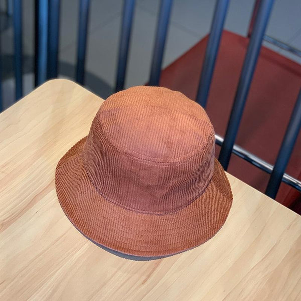 Leisure Corduroy Fisherman Hat Fall and Winter Foldable Art Sunhat, Size: M (56-58cm)(Caramel Colour)