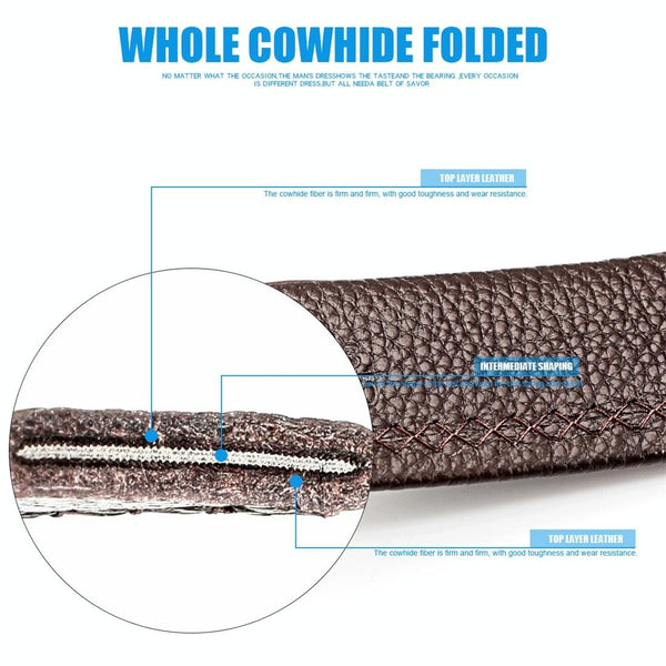 Men Casual Cow Leather Belt Waistband, Length: 120cm(Brown)