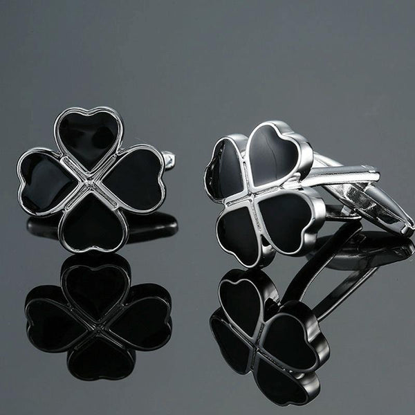 Men Clover Rose Pattern Cufflinks, Color: Black Clover